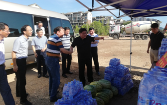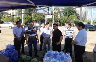 烈日下的八一大橋項目現場一片繁忙景象,工人們有的在支模、有的在焊接鋼筋、有的在澆筑砼,一切都井然有序,忙而不亂。屯溪區區委書記江善良一行一到現場,就將一件件防暑降溫慰問品遞到在施工的工人們手中,并囑咐在高溫下施工的操作人員要多注意休息、及時補充水分和營養,按項目部要求合理安排工作時間,避免中午高溫時間段施工,同時要求項目部積極做好防暑降溫工作,保障施工一線工人的生命安全。充分體現了屯溪區委、區政府等領導對我集團公司的一片深情厚誼和關懷。