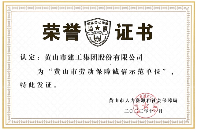 黃山建工集團榮獲2022年黃山市勞動保障誠信示范單位稱號