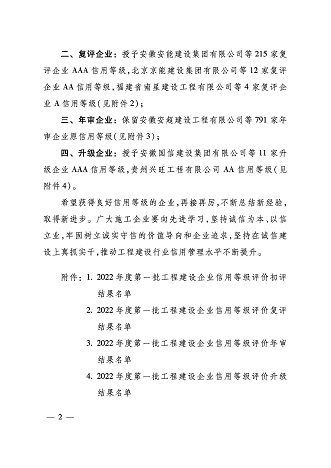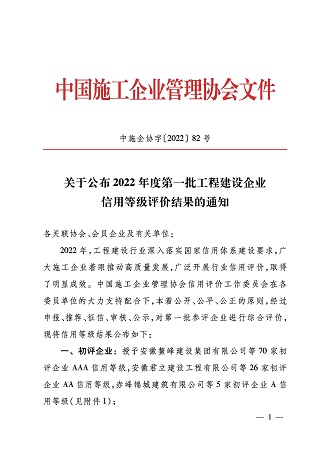 2022年,黃山市建工集團股份有限公司再次榮獲施工企業(yè)最高信用評級“AAA級企業(yè)信用證書”。這是對黃山市建工集團股份有限公司持續(xù)積累的經(jīng)營管理能力、合同履約能力、市場競爭能力及優(yōu)質(zhì)社會形象的權(quán)威認(rèn)證。