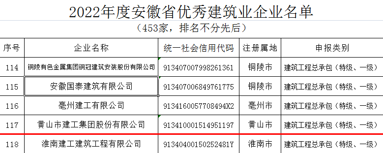 近日,安徽省住房和城鄉建設廳發布了“2022年度安徽省優秀建筑業企業”名單,黃山建工集團憑借企業經營發展、管理創新能力、企業建造能力、企業文化建設、社會責任履行等方面的卓越表現再次名列榜單――建筑工程總承包類(特級、一級類別)省優秀建筑業企業,連續多年斬獲該項殊榮。