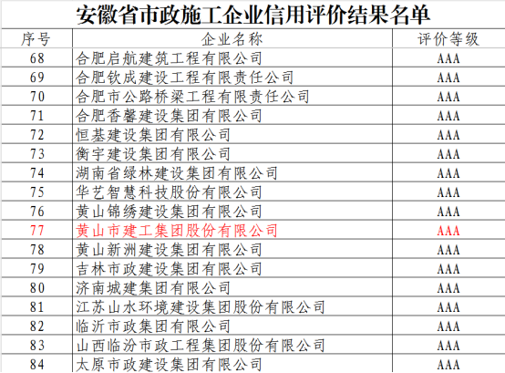 近日,安徽省市政工程協(xié)會正式發(fā)布《關(guān)于公布2025年安徽省市政施工企業(yè)信用評價結(jié)果的通知》。黃山市建工集團憑借卓越的綜合實力、規(guī)范的市場行為、優(yōu)良的工程品質(zhì)及堅實的信用體系建設(shè),成功獲評最高信用等級——AAA級。標志著集團在誠信經(jīng)營、履約能力與社會責任履行方面獲得了行業(yè)主管部門與協(xié)會的高度認可,是企業(yè)信用建設(shè)領(lǐng)域的又一重要里程碑。